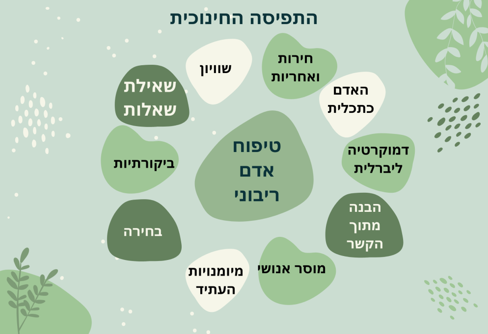 ריבונות האדם כעקרון מנחה, ומכאן טיפוח הילד והילדה כבני-אדם ריבוניים, תוך הנכחת המתח שבין חירות אישית לבין אחריות לעצמי, לזולת ולסביבה, והתמודדות איתו.