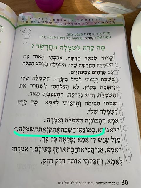 החוברת סך הכל ראויה. יש תחושה של תיקונים מאוחרים. המשפט בטקסט אודות הדגל מרגיש מודבק. השאלה על קיום מצות "השבת אבדה" גם כן. לתחושתי הוא מעט יותר מאוזן בנושא המגדרי, למרות שעדיין האמא היא זו שתתקן את השמלה, והיא תעשה זאת כמובן רק בצאת השבת… (ע' 80). דוגמא לאיזון המגדרי נמצאת בטקסט (עמוד 52) "מה אעשה כשאהיה גדולה?" שבו ילדה שאביה רופא ואמה רוקחת מתלבטת מה תעשה כשתגדל. העובדה שכל האופציות פתוחות והבחירה בידיה. אני בהחלט הייתי מותרת על השורה האחרונה בטקסט אודות הדגל. מסירה את השאלה הבעייתית מהדיון לאחר הסיפור אודות רבי פנחס בן יאיר (קיום מצות "השבת אבדה"). פרט לנקודות שהעליתי למעלה הספר סך הכל מעלה מגוון סיפורים חיוביים.