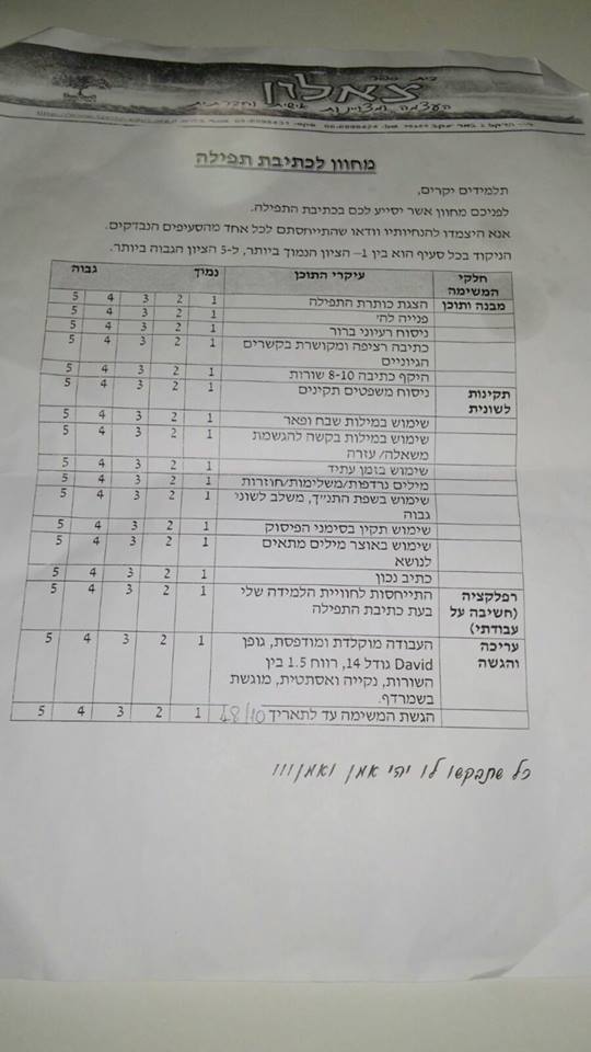 מכירים את זה שהבן בכיתה ו׳, בבי״ס חילוני חוזר עם משימה שהכותרת שלה הוא ״מחוון תפילה״??