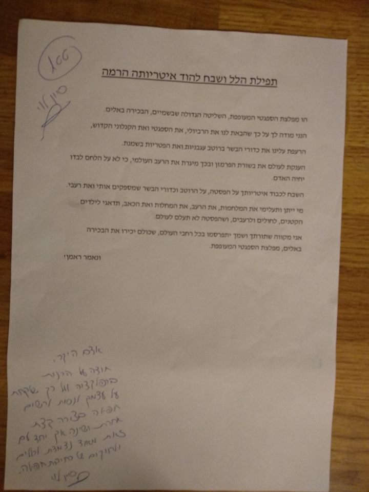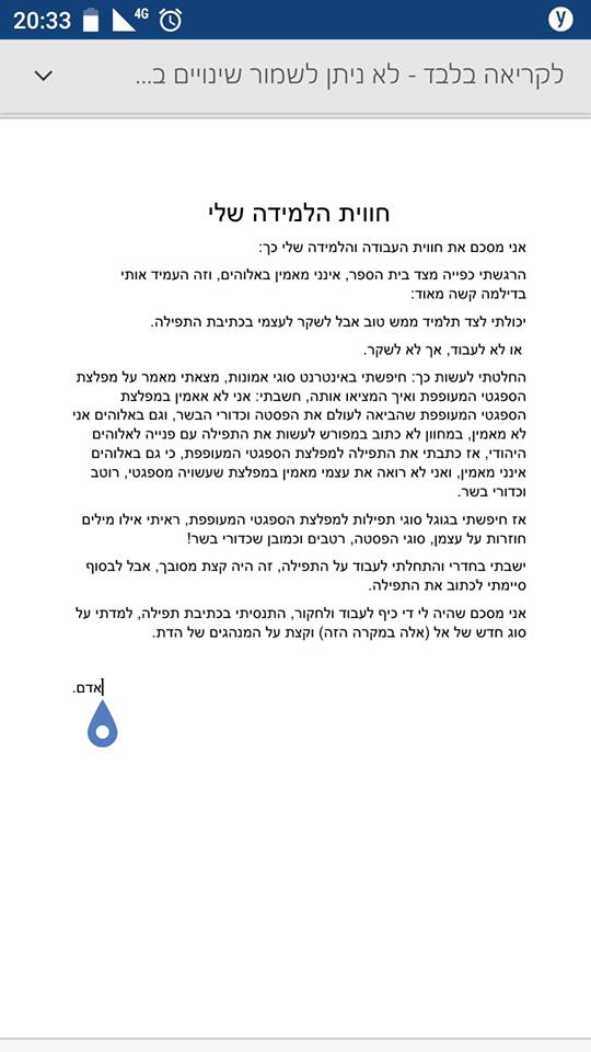 משימה בשיעור שפה – לכתוב "תפילה אישית"
